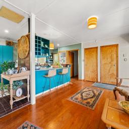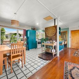 Set on a generous 895sqm section and positioned perfectly for the sun, the property features beautiful native timber floorboards, three bedrooms, two toilets, and an open-plan kitchen and dining area that flows naturally into a well-proportioned lounge.