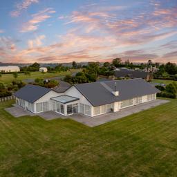 Tucked away in the coveted Ardsley Lane enclave, this remarkable property redefines lifestyle luxury in the Wairarapa. Completed in 2022 by Jennian Homes, the residence offers an impressive 440sqm (approx.) of contemporary design set across a sweeping hectare of land. From its elevated position, the home captures uninterrupted rural vistas and evening skies that light up the Tararua Ranges in spectacular fashion.