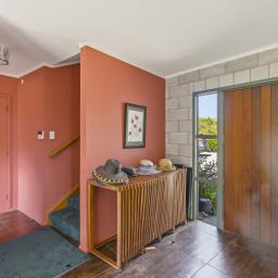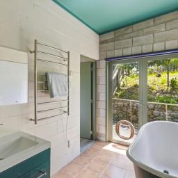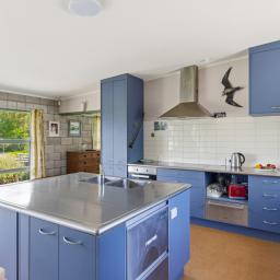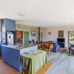 Set on 2.5 hectares, the distinctive 246m² home is constructed from concrete hot blocks, ideally suited to withstand the coastal environment. The heart of the home is a generous open-plan living area, featuring a sleek, modern kitchen complete with polished stainless-steel benchtops, soft-close drawers, and top-tier induction appliances.