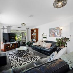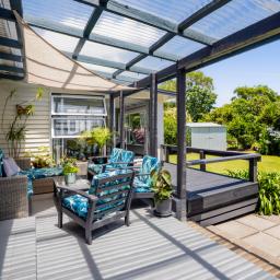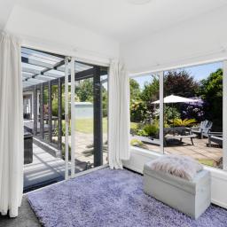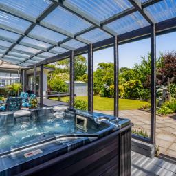 The main lounge extends into a welcoming sunroom and out to the spa pool and large covered outdoor patio, a favourite sheltered spot to sit back, relax and enjoy looking out over your private oasis, with space for children or pets to play, and perfect for summer barbeques and outdoor entertaining.