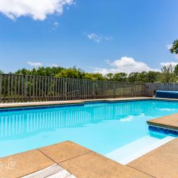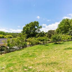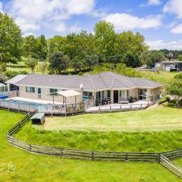 gardens, fruit trees, and lush lawns, all framed by the tranquil countryside. The fully fenced pool area promises summer fun and easy maintenance thanks to its cover.