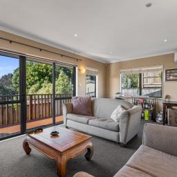Situated on a manageable freehold section, the home sits slightly elevated, offering a sense of privacy along with small sea glimpses. The private outdoor entertaining area is ideal for weekend BBQs, unwinding after work, or spending time with friends and family. With easy-care gardens, tenants can enjoy the space without the upkeep.
