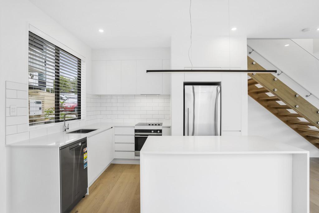 As the 'penthouse unit' in the block - the largest interior proportions & most expansive private outdoor space this unit is superbly positioned for all-day sun with open plan living on the ground floor opening to an expansive wrap around outdoor space. Perfect for entertaining during the warmer months. Modern brand new kitchen with high spec appliances & island bench space. Accommodation is all upstairs - Three well proportioned bedrooms, the master featuring an ensuite.The unit features double glazing and a heat pump on each level for all-season comfort. There is 1 off street car park with street parking on Kohi Road for an additional car.