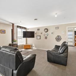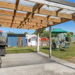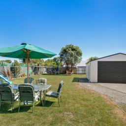 Doors off the dining leading onto the generous backyard complete with large double garaging, garden shed and off street parking.