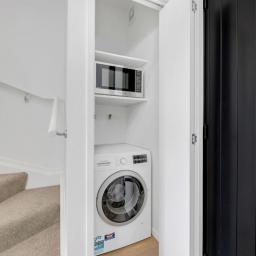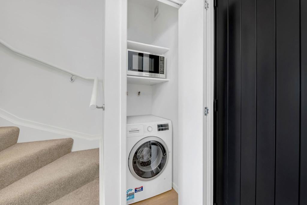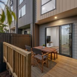 Step inside to discover open-plan living downstairs, complemented by a modern kitchen fitted with quality Bosch appliances and finished in timeless neutral tones. Enjoy effortless indoor-outdoor flow to a sunny decked backyard through a large ranch slider, opening up to a tranquil outlook over the local reserve. With direct rear access, you can enjoy a short stroll to The Hub, making everyday errands and social outings a breeze.