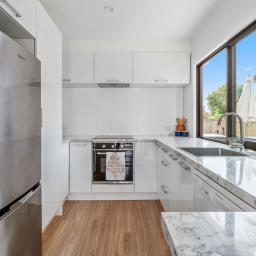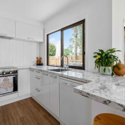 Freshly painted inside and out, this abode boasts a brand-new kitchen and bathroom, tailored to meet the demands of contemporary family life. The property's striking feature is its beautiful, fully fenced yard, providing a safe haven for children to play and offering direct access to the lush community garden and your own idyllic private oasis of palm trees.