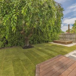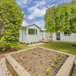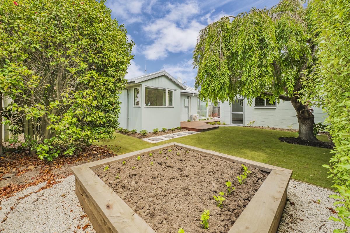 Even the landscaping has been freshly upgraded with new lawn, plantings, and raised beds.