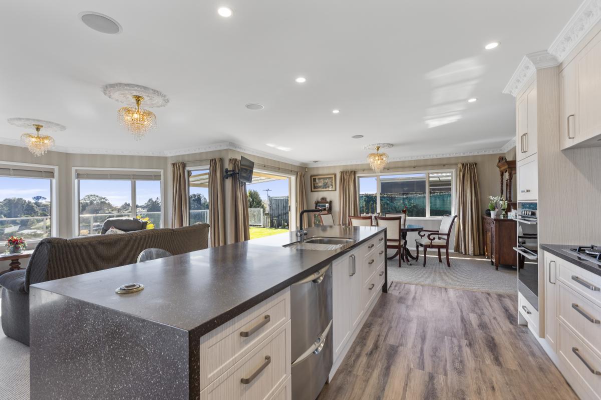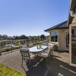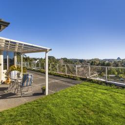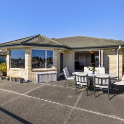 Seamless indoor–outdoor flow connects the living areas to landscaped gardens, providing the perfect setting for summer BBQs, outdoor entertaining, or soaking up the sun while its elevation enjoys distant views over Paritutu Rock and surrounds. A large double garage with internal access, along with additional off-street parking, ensures practicality and ease.