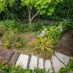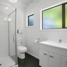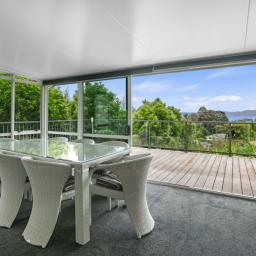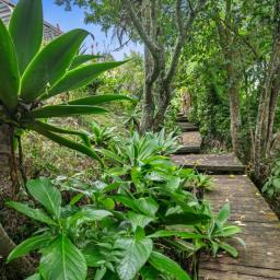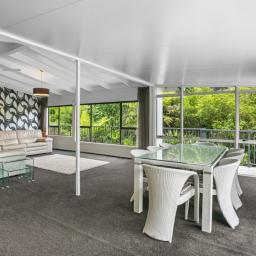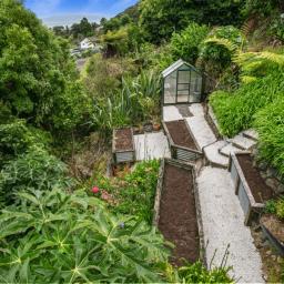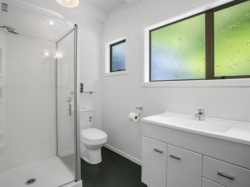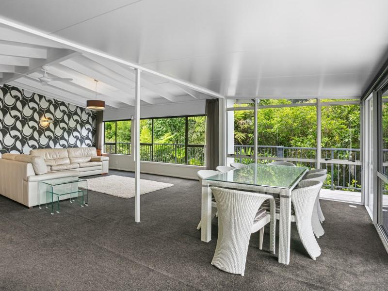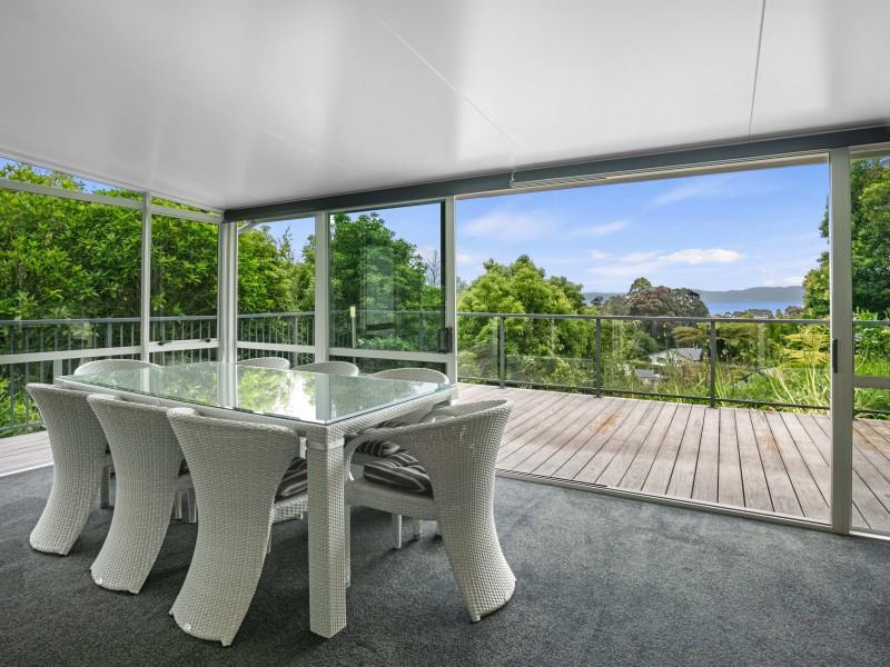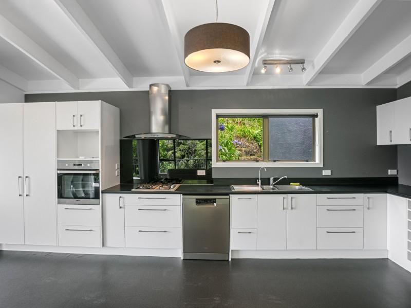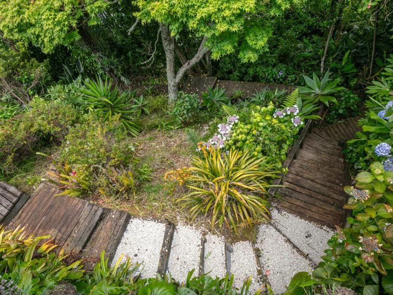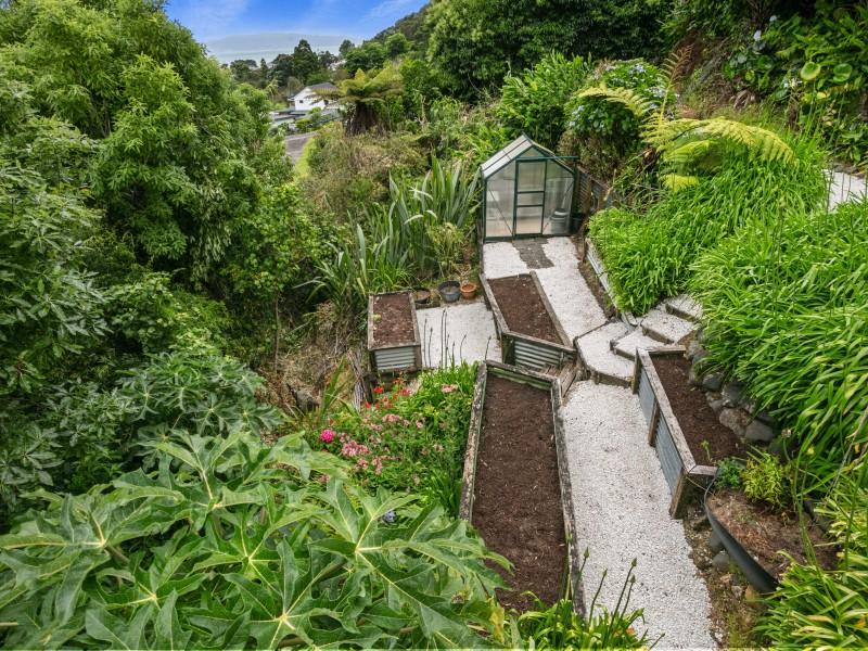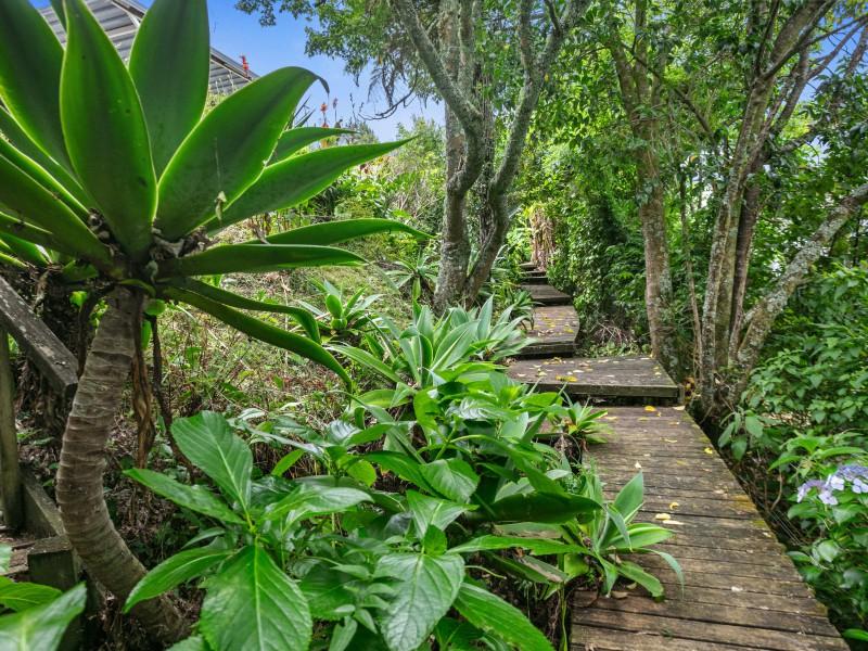The deck overlooks your own boardwalks which meander through the lush green bush and the garden area where you can grow your own vegies in the greenhouse.