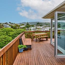 Dual sliding doors open onto a generous wrap-around deck spanning two sides of the home. Bathed in sunshine throughout the day, this space delivers exceptional indoor-outdoor flow - a seamless connection that is rarely matched.