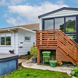 Outside, the property continues to impress with extensive decking, a workshop or gardening room, lawn area, spa pool (which can remain), children's playhouse, raised garden beds, and ample off-street parking.