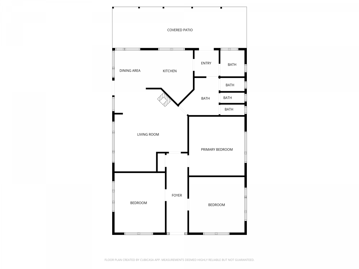 Accommodation includes three generous double bedrooms, offering flexible layout options. The centrally located bathroom has been updated and is notably spacious, featuring two separate showers, a double basin and modern lino flooring. A separate toilet adds convenience, while the updated laundry includes a second toilet.