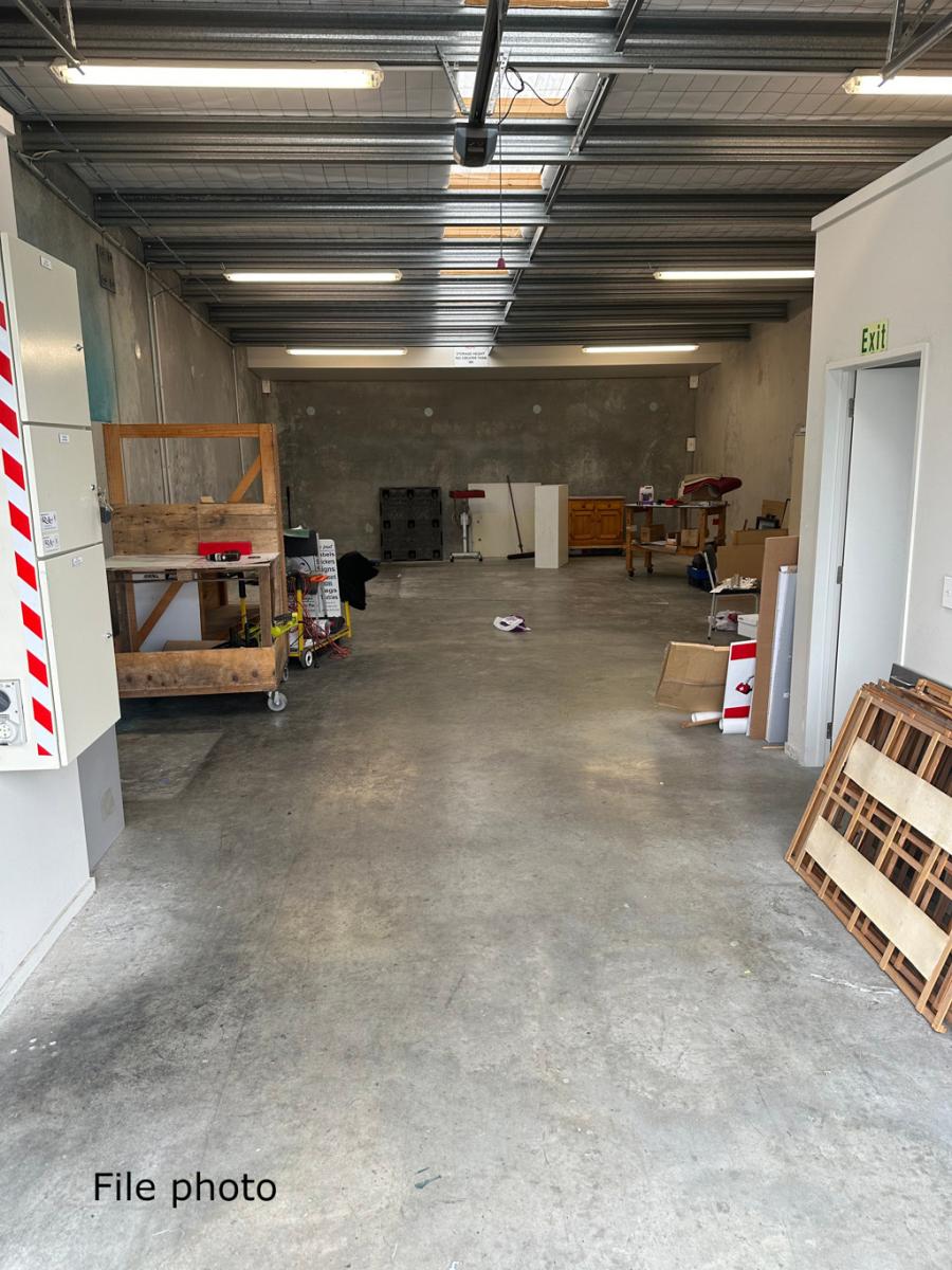 This unit includes a small office, fibre, toilet, kitchenette and remote roller door.