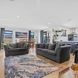 5C Temple Drive sits within the ever growing Tussock Bend subdivision, offering a great home-and-income setup with exceptional space and flexibility across its 2016m² site. The main home, built in 2021, delivers 170m² of considered living: four bedrooms, two bathrooms with underfloor heating, a ducted heat pump system, and a wood fire ensure comfort and practicality. An attached double garage supports everyday convenience and storage.