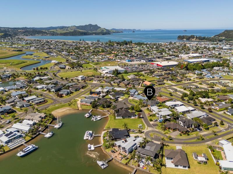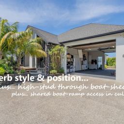 Superbly situated and settled amongst other quality residences in a popular and well-regarded 'Whitianga Waterways' double cul-de-sac; this significant refined and dignified contemporary executive/family residence offers you the style, sophistication and 'Whitianga Sunshine' you surely deserve... PLUS your own massive internal high-stud (through) dual-door boat-shed/garaging ... PLUS your shared boat-ramp and canals access straight from your cul-de-sac. There it is... does it feel like you may have have finally found your wheel-house? Then why not call Ange 021 131 8525 now for your private or personal live video showing options - thank you.