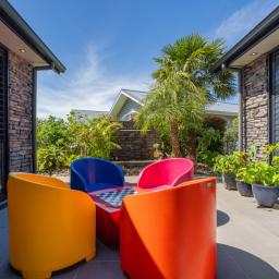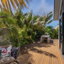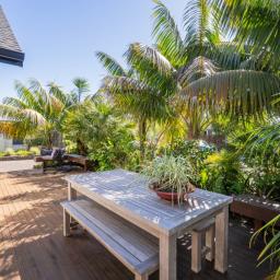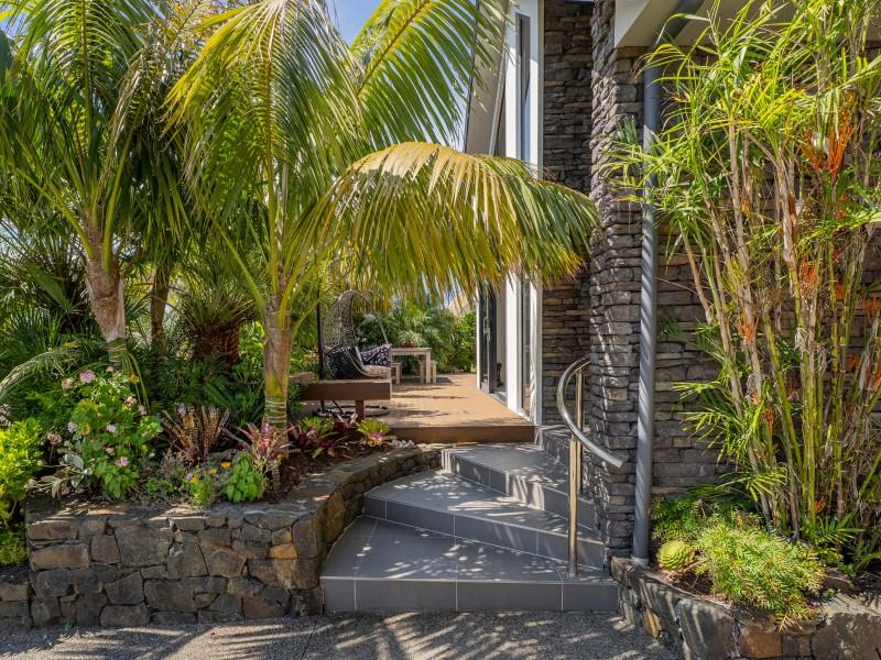 > enchanting tropical landscaped grounds plus edibles - all supported by 2,000 litre garden water tank/irrigation: easy-care though 'potter' if you like