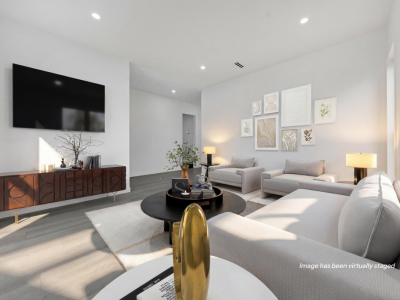 At the heart of the home is a sun-filled open-plan living, dining and kitchen area, where clean lines, quality appliances, and a generous island bench create a welcoming hub for everyday living and entertaining. Large windows and seamless indoor-outdoor flow connect the living space to private decking and a fully fenced backyard, ideal for summer BBQs, children, or pets.