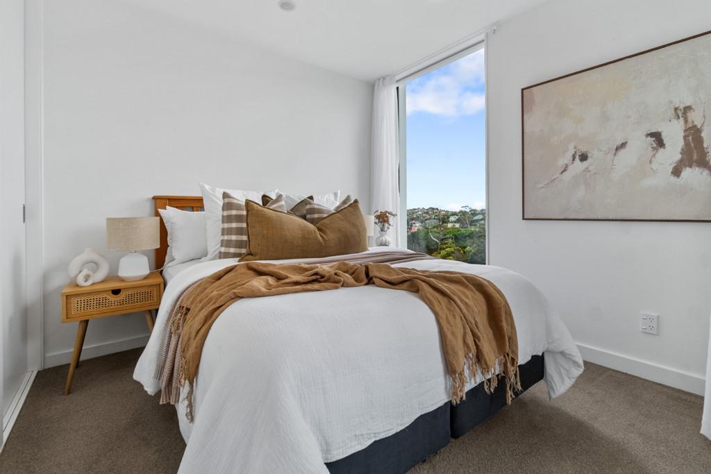 Step inside and be greeted by a home flooded with natural light. The open plan living flows effortlessly onto a private balcony, where elevated outlooks over Rawene Reserve provide a sense of tranquillity rarely found so close to the city. Imagine morning coffees in the soft glow of sunrise, evening drinks as the sky turns gold, or quiet moments spent soaking in the serenity of your surroundings. The balcony is more than an outdoor space; it is an extension of the home, a private retreat where every moment is an opportunity to slow down and enjoy life.