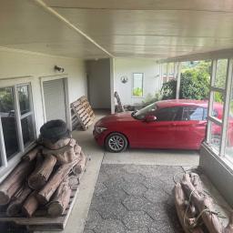Shed has two roller doors one open bay and one workshop bay, is 9m deep and high stud with power also has carport in front and large concrete pad ideal, the house also has a single garage and entrance way/ carport area