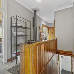 Tucked away at the rear of a private right of way, elevated and hidden from the roadside, sits this inviting three - four bedroom family home (if you include the downstairs area), making a peaceful and versatile retreat, with space to grow.