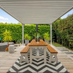 The Louvretech system makes indoor-outdoor living effortless year-round, while the pizza oven turns casual dinners into events - think wood-fired pizzas, slow Sunday lunches, kids choosing toppings, and evenings that stretch longer than planned. This is outdoor living done properly