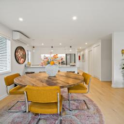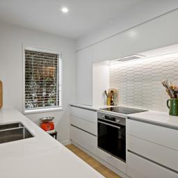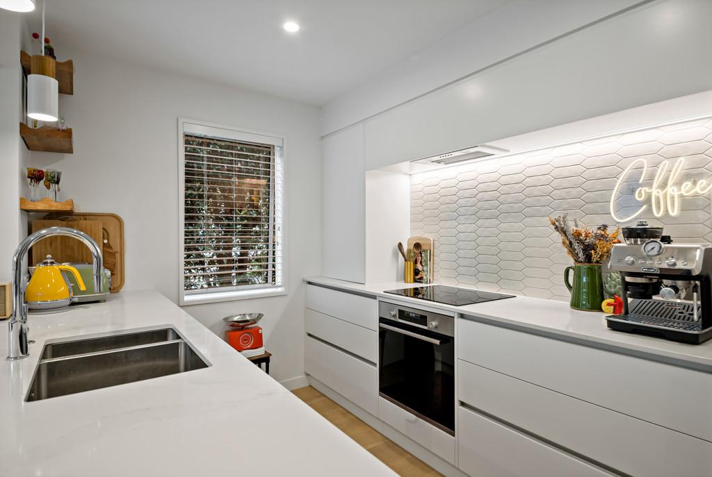 At the heart of the home sits the kitchen - truly the hub of daily life. Positioned perfectly right next to the lounge, it keeps everyone connected, whether it's homework at the bench, a glass of wine while dinner simmers, or friends gathering where they always do. From here, the home flows seamlessly out to the private yard, creating an easy rhythm between inside and out.