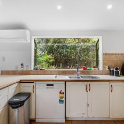 There are four double bedrooms, three on the lower level with the main bedroom upstairs, complete with walk in wardrobe and ensuite. The open plan kitchen, living and dining areas are welcoming and easily connected to a very private outdoor deck that offers a quiet relaxing space or easy entertaining.