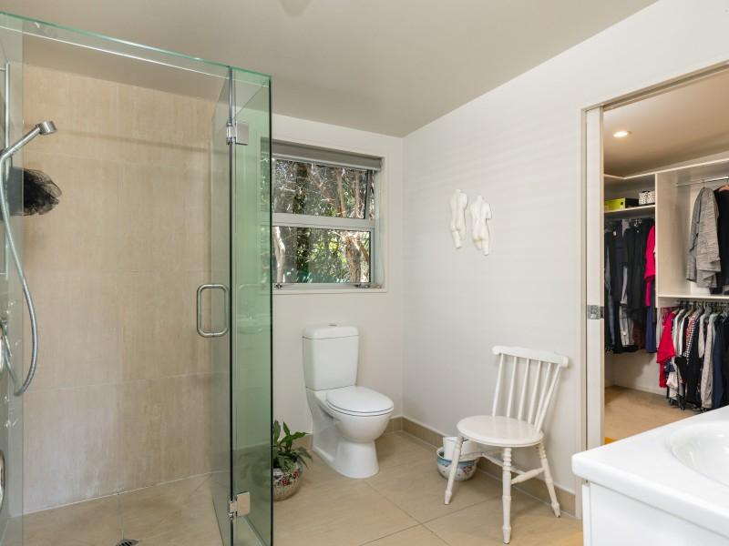 The upper level forms the primary living zone, where open plan kitchen, dining and living spaces are warm, refined and well resolved. A Jet master fire, heat pump and underfloor heating provide comfort, while stone benchtops, quality appliances and a walk-in scullery ensure the kitchen performs effortlessly for everyday living and entertaining. A servery window connects to sheltered al fresco dining and large doors extend the formal living space onto a wrap-around balcony where sun and views define the experience.