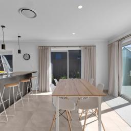 Step inside to a light-filled open-plan living area that seamlessly connects the lounge, dining, and kitchen—creating a welcoming hub for both everyday living and entertaining. The contemporary kitchen is thoughtfully designed with quality finishes, ample storage, and a functional layout to suit busy households.