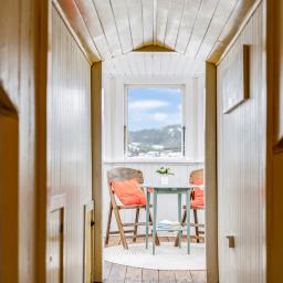 • Open dining area flowing effortlessly to a sunny, sheltered deck via elegant French doors